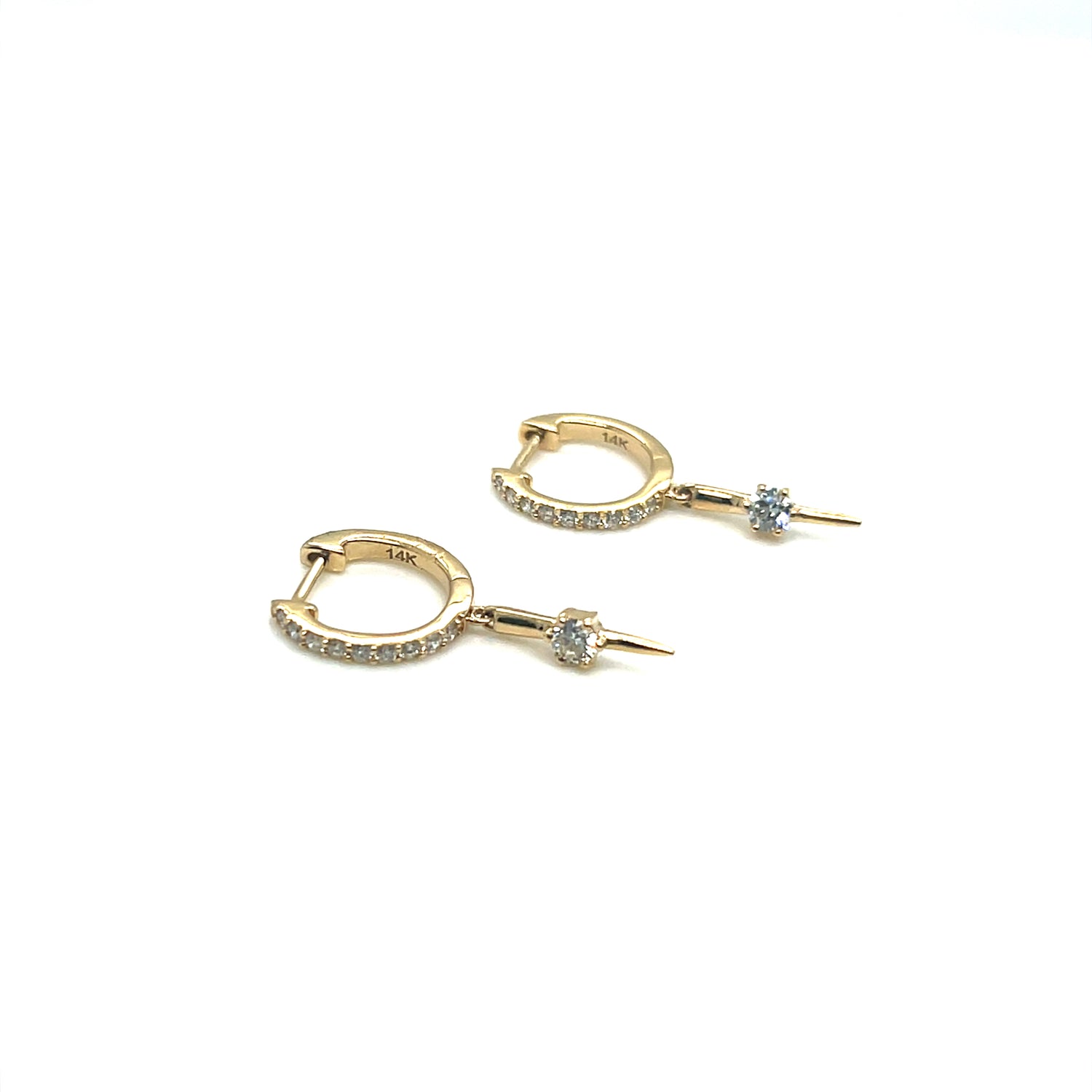 14Kt Yellow Gold Diamond Dagger Huggie Earrings