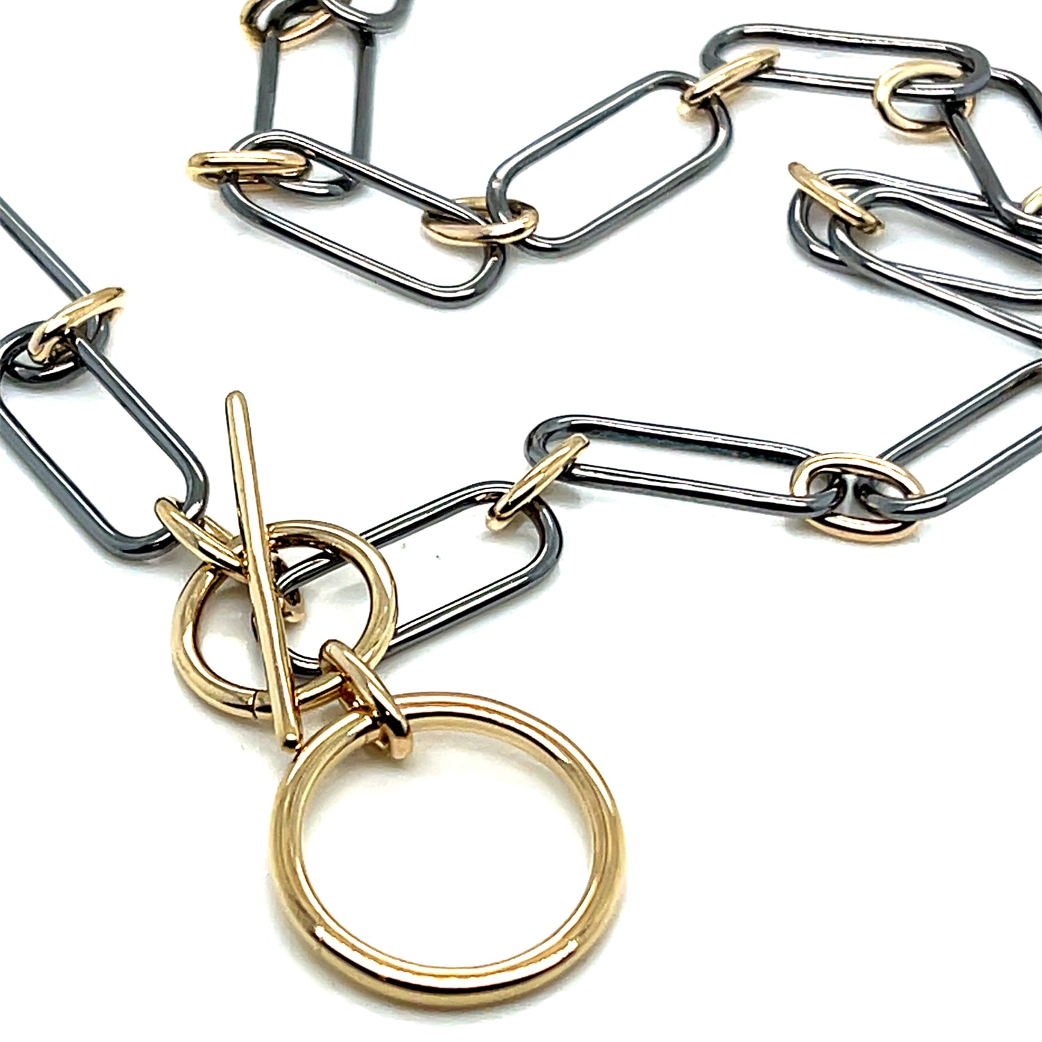 Sterling Silver and 14Kt Yellow Gold Link Toggle Necklace