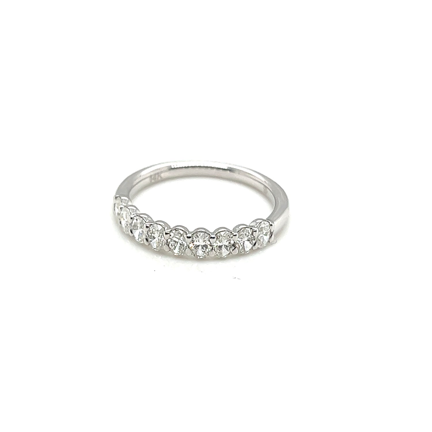 14Kt White Gold Oval Cut Diamond Band with 9 Oval Diamonds weighing .90 Cttw. The Ring is a size 7 and weighs 2.51 Grams.